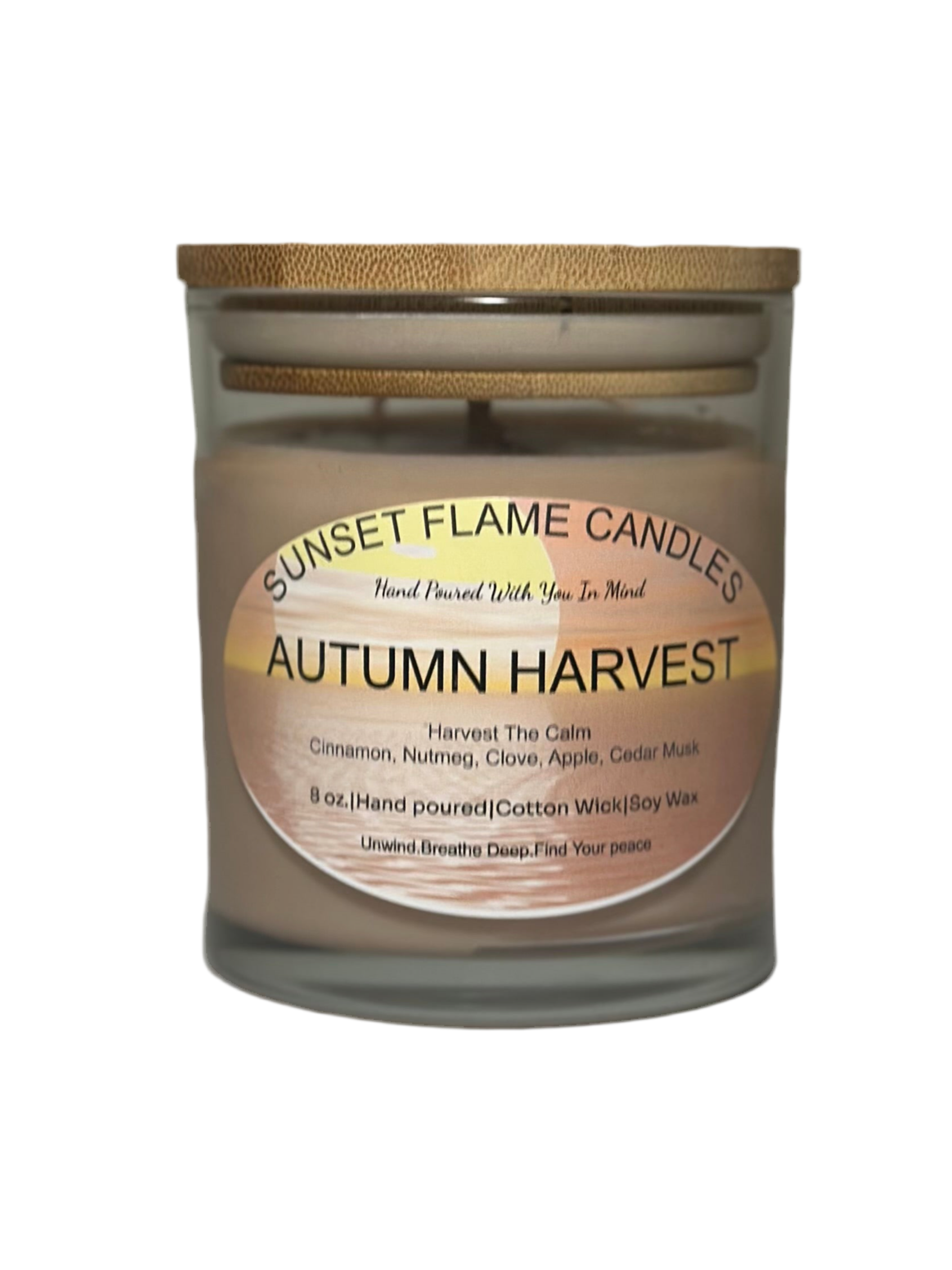 Autumn Harvest is the ultimate fall-scented candle, blending the crisp sweetness of freshly picked apples with the warm spice of cinnamon and aromatic nutmeg. Each 8 oz candle is hand-poured in small batches and available in your choice of 100% soy wax for a clean, eco-friendly burn or our premium paraffin–soy blend for a bold, room-filling fragrance. Perfect for cozy nights, holiday gatherings, or as a thoughtful seasonal gift, this candle captures the heart of autumn and brings the comforting scents of fall right into your home.