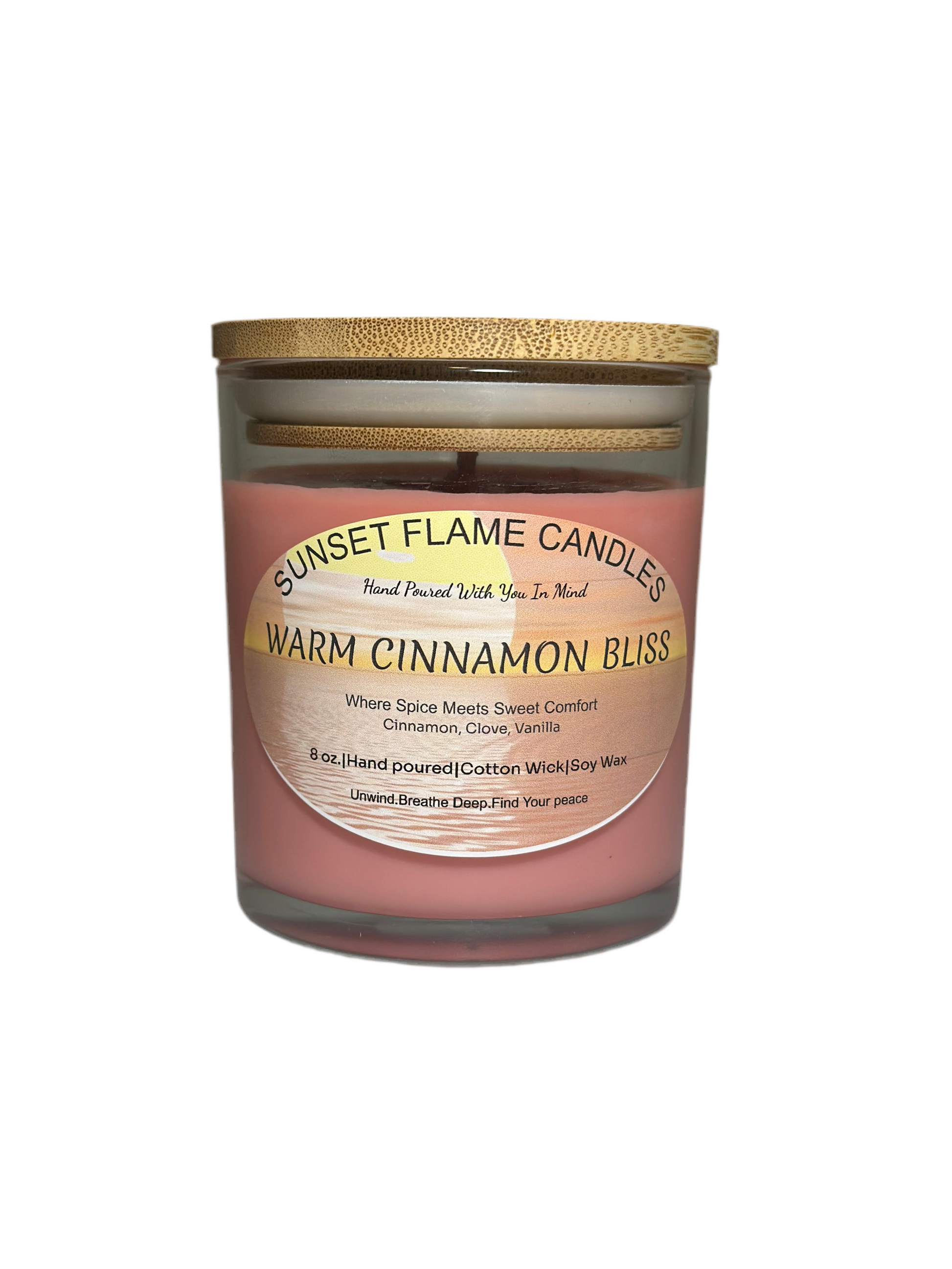 Warm Cinnamon Bliss fills your home with the inviting aroma of sweet cinnamon, creamy vanilla, and a touch of sugar. Available in both 100% soy wax and our premium paraffin–soy blend, this hand-poured 8 oz candle offers a clean, even burn and long-lasting fragrance. Perfect for fall décor, holiday gifts, or anyone who loves warm, cozy home scents.